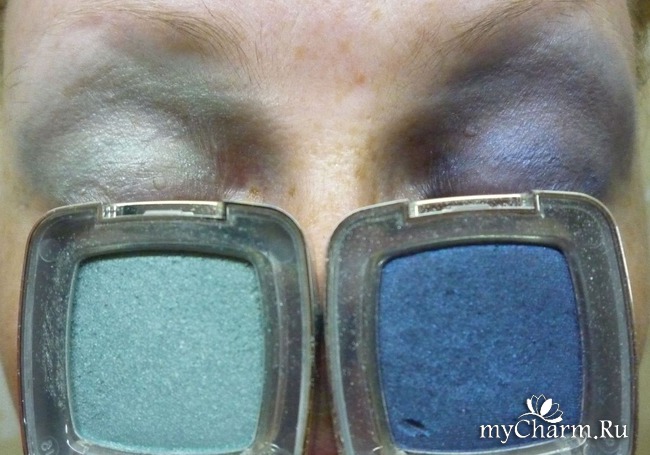 На глазах они довольно светлые, их можно нанести или на всё веко, или только на нижнее и тоже будет неплохо.