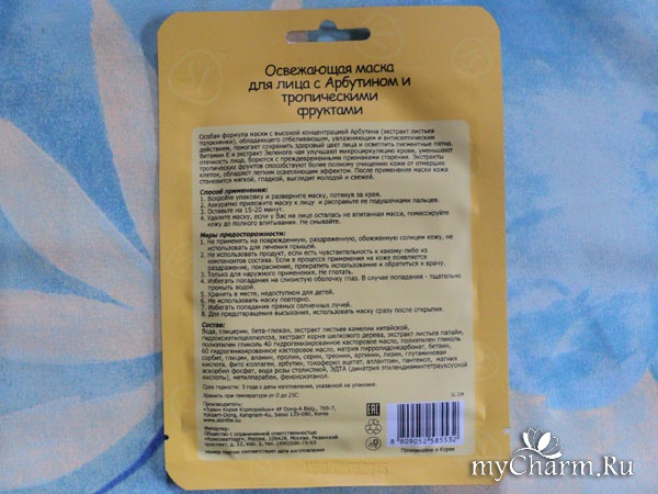 Кстати, здесь, в этой маске арбутин заявлен как компонент в высокой концентрации. В средствах масс-маркета обычно не рискуют помещать вещества в высокой процентовке. Но здесь – типично азиатский продукт с высокой активностью арбутина.
