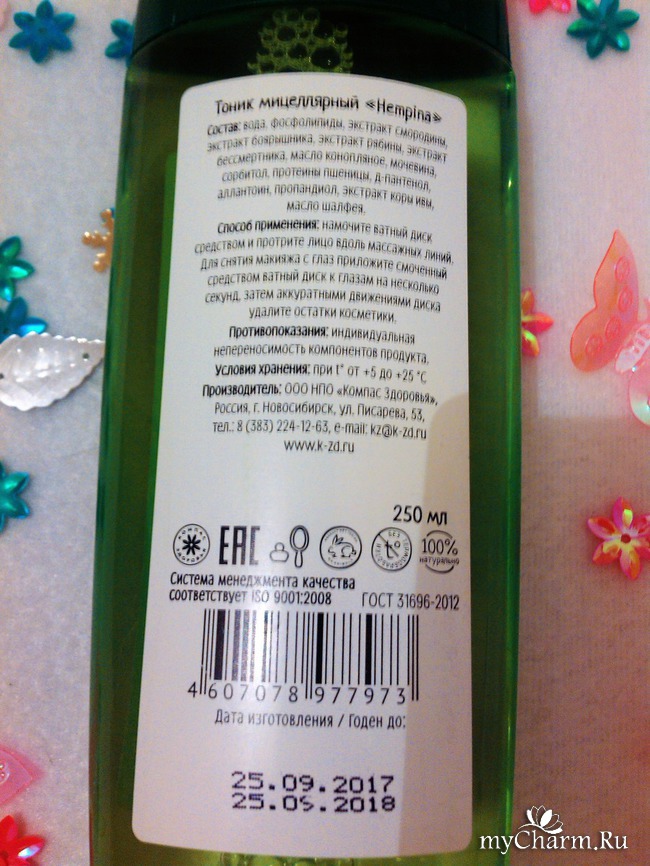Сегодня мы с вами посмотрим в действии тоник мицеллярный серии "Hempina" от компании "Компас Здоровья". Он предназначен для ухода за кожей лица, для ее очищения, увлажнения и тонизирования.