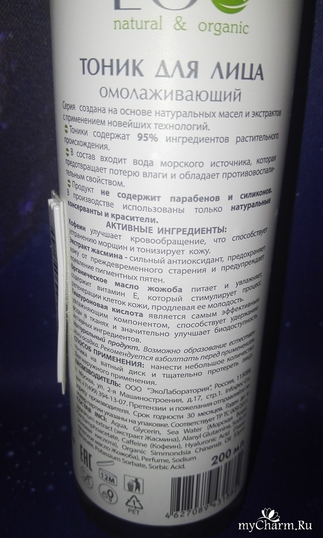 Не могу сказать, что тоник полностью натуральный, но содержит 95 % ингредиентов растительного происхождения.