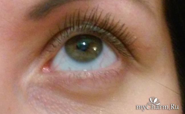 Но как видно по фотографии, форма очень даже подошла и отлично прокрасила все мои реснички! Хочу сразу оговориться, что здесь я наносила тушь в один слой, потому что макияж был дневным, кто хочет поярче, может не опасаясь наносить в несколько слоев! Тушь действительно не оставляет комочков и не склеивает реснички!