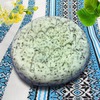 Мой твердый шампунь называется "Честная липа", такой ироничный афоризм лежит в названии. Круглый кусочек твердого шампуня завернут в прозрачный полиэтилен и завязан веревочкой, на которой прицеплена бирка с информацией о продукте и производителе. Сам брусочек приятного светло-желтого цвета с вкраплениями цветов липы.