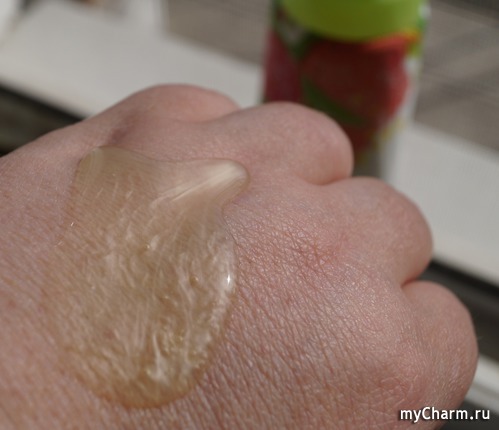 Беловато-зелёленая гелеподобная субстанция. Я бы не сказала, что очень густая. Мне казалось, что заявленное название КРЕМ должно как-то отличать внутреннее содержимое от привычного геля. Визуально разница только в том, что субстанция перламутровая. Выглядит приятно, я бы даже сказала - богато. Запах скорее травянистый, нежели мимозово-тюльпановый, но вполне приятный, нежный и ненавязчивый.