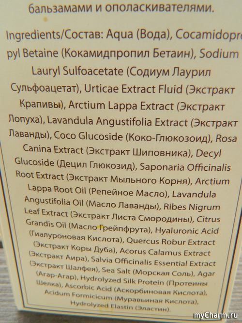 Заинтриговало присутствие экстрактов шиповника и листьев смородины. Оказывается, оба этих компонента стимулируют рост волос, питает их корни и по всей длине, предотвращает ломкость, делая при этом волосы здоровыми и блестящими.