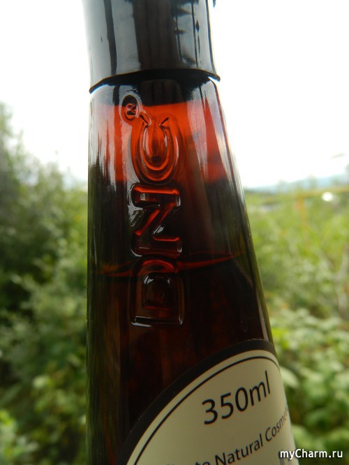 Думаю, такая упаковка привлечёт внимание в магазине: лично мне стало бы интересно: что там, внутри? А внутри – вот такая интересная бутылочка из тёмного пластика с длинным и узким горлышком (тоже смахивает на винную тару).