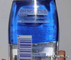 Я пользуюсь продуктом ежедневно для удаления теней и водостойкой туши. Даже в этом случае средство работает на отлично, при этом не оставляя жирной и неприятной пленочки. Для снятия макияжа с глаз достаточно протереть каждый по 2 раза, предварительно стряхнув средство и нанеся его на ватный диск (кстати, я всегда использую темные тени и черную тушь в несколько слоев - довольно яркий макияж). Никакого жжения, раздражения, покраснения и дискомфорта средство не вызывает. Кожа вокруг глаз становится нежной и посвежевшей. После использования рассматриваемого продукта я умываюсь муссом от Nivea, о нем вы сможете прочитать подробный обзор, пройдя по ссылке выше. Вместе средства позволяют очистить кожу не только от макияжа, но и загрязнений.