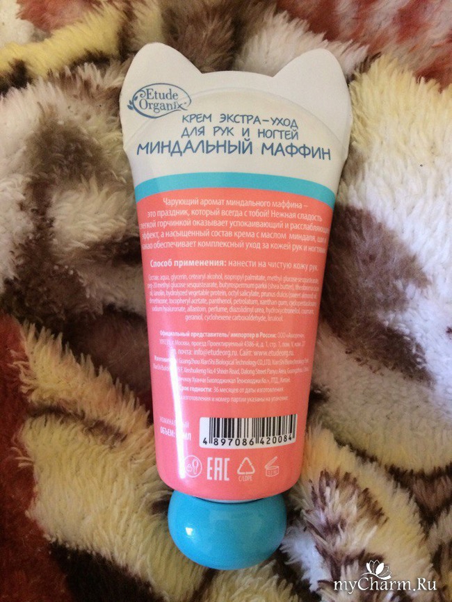 Для этого есть универсальные крема для комплексного ухода. И в этом обзоре снова хочу представить Вам Корейского производителя Etude Organix и его крем экстра-уход для рук и ногтей с ароматом миндального маффина. С данным производителем я уже знакомила вас в предыдущих обзорах, маски просто потрясающие, с вкусными ароматами и достойными эффектами, очень интересно будет попробовать их продукт для рук, как он себя покажет.