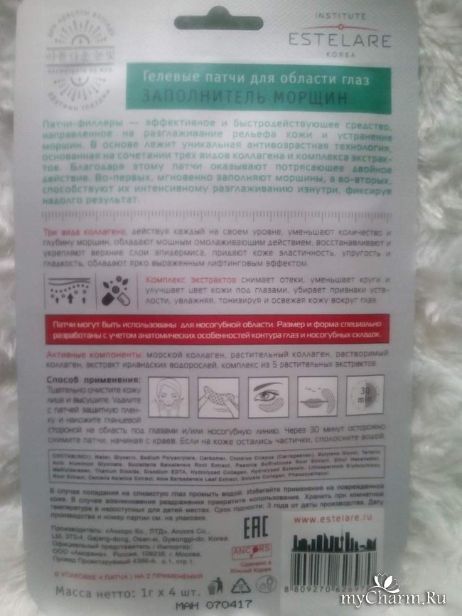 На обратной стороне упаковки полное описание патчей, способ их применения и конечно же состав: