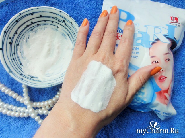 Смывается пудра с лица очень легко. После маски создается ощущение матовости кожи, так как она немного подсушивает, немного светлеет тон кожи, если есть воспалительные явления на коже, то пудра тоже их убирает! А метод опудривания вообще прост и замечателен: утром кожа светлая, нежная и матовая. Думаю, что для жирной и комбинированной кожи жемчужная пудра – это просто находка! А для сухой кожи пудру вполне можно смешивать с косметическим маслом. Чувствительную кожу, такую как у меня, маска с жемчужной пудрой успокаивает. Не знаю, насколько эффективно пудра справляется с приобретенными пигментными пятнами, но мои веснушки стали менее выражены.