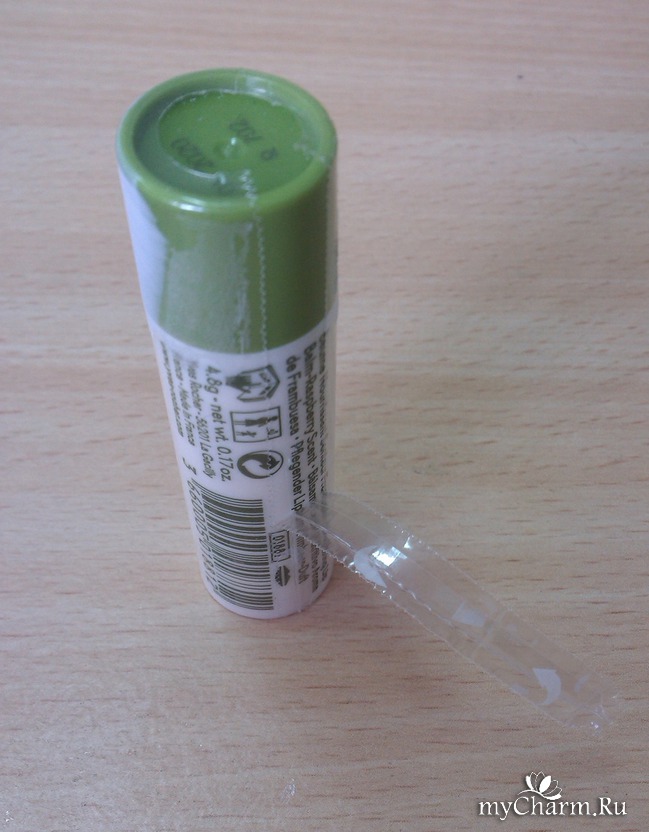 Бальзам упакован в удобный для использования футляр, как у помады. Мне больше нравятся такие стики, чем баночки, в которые нужно залезать пальцем. На крышке футляра стоит фирменный значок бренда. Сам футляр бело-зеленый. Такую цветовую гамму имеет основная линейка бальзамов для губ от Ив Роше.