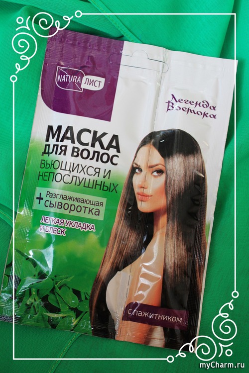 Средство 1+1, т. е. Маска для волос вьющихся и непослушных + разглаживающая сыворотка от NATURAЛИСТ серия Легенды Востока. Яркий пакетик с изображением зелени и роковой красавицы с длинными прямыми волосами имеет перфорацию, по которой можно его разделить на две составляющие. Одна- маска, другая- сыворотка. Это удобно и практично, поскольку используется поэтапно и не один раз. А теперь все по порядку.