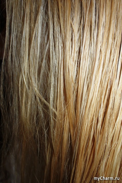 Сыворотка прозрачная с легким белесоватым оттенком. Своим ароматом она как бы вторит маске- такая же сладко-цветочная с милой кислинкой. Так что, волосы наполняются нежными нотками лета. Несколько капель растираем подушечками пальцев и наносим на кончики волос. Сначала ощущается некоторая маслянистость, но на волосах это не дает такого же эффекта. Состав быстро впитывается и можно оценить действие. Если кончики секутся, то чуда не случится. В моем случае кончики подстрижены, но беда сухости их не покидает. Сыворотка отлично увлажняет и как бы «оживляет» их. Появляется блеск и здоровый вид. Видимо всю заслугу следует отдать содержащемуся в составе маслу кокоса. Именно этот растительный ингредиент приходит на помощь поврежденным сухим волосам.