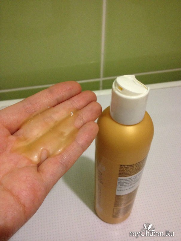 Сам шампунь прозрачный, желтого цвета, достаточно гутой. Пахнет приятно. Ну не сказать, что этот аромат очаровывает, но отторжения не вызывает точно. Запах сладковатый, маслянистый (если так можно сказать о запахе, я имею в виду, что пахнет маслами). Пенится шампунь очень хорошо. Совсем малым количеством можно прекрасно вымыть волосы.