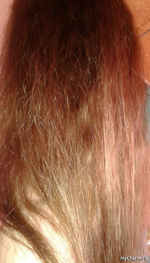 Теперь по поводу применения. Данное масло перед применением необходимо подогреть (я помещала пакетик-саше в емкость с горячей водой) и распределить по всей длине волос и немного на корни. Затем оставить на 15 - 20 минут, при желании укутать голову полиэтиленом. Но я обычно держала куда больше 20 минут, думаю эффект от этого только усиливается. Потом масло необходимо смыть своим обычным шампунем. Хочу сказать что масло отлично смывается любым шампунем, как бессульфатным, так и шампунями с содержанием sles.