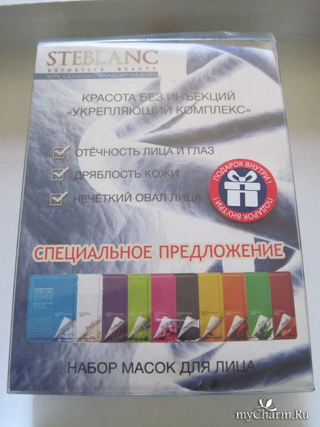 Одна тканевая маска Steblanc стоит 220 рублей, но у меня целый набор, который обходится дешевле. Получается, что платишь за 5 масок, а шестая – бесплатно. Плюс приятный подарочек от производителя – маленькое полотенце для лица в подарок. Отличный бонус. Очень хорошее полотенце, чтобы промокнуть лицо. Но вернемся к маске.