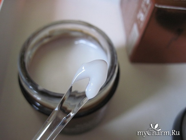Объем крема довольно щедрый – не каких-то там 30-50 мл, а целых 75 мл. Крем представлен в банке, а к нему – что я так редко встречаю в косметике – изящная лопаточка! Коробка заклеена. На коробке помимо латинского представлен и русский вариант состава, что очень порадовало. Крем после начала использования хранится 75 мл.