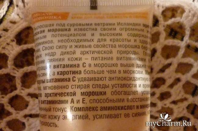 В составе крема сделан акцент на органическое масло исландской морошки, которое ценно высочайшим содержанием природных витаминных комплексов, позволяющих значительно улучшать состояние кожи. Оказывается, уровень содержания в масле морошки витамина С во много раз превышает его содержание в апельсинах.