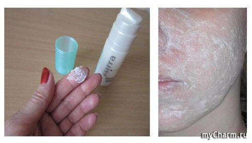 - наношу скраб (важно: все Mirra-средства наносятся на слегка влажную кожу);