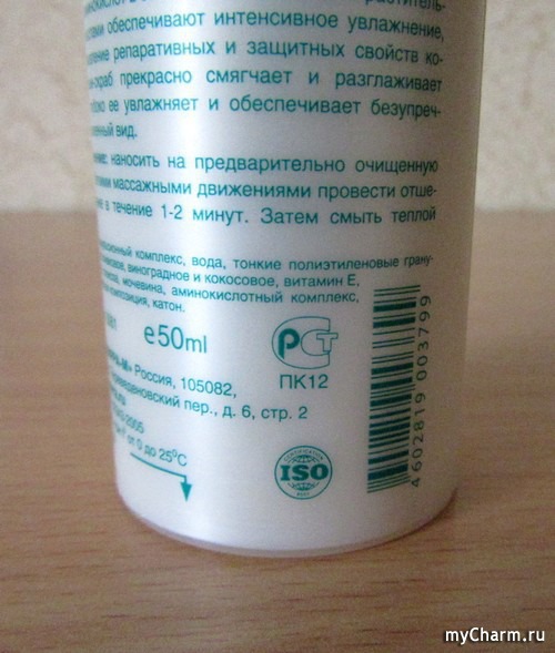 В его составе содержатся специальные пористые микрогранулы. Крем насыщен натуральными маслами: оливковым, виноградным и кокосовым.