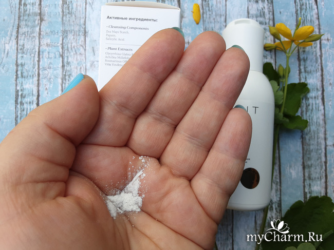 Способ применения более чем прост: необходимое количество порошка нужно насыпать в ладонь, затем добавить воды, вспенить и нанести на лицо. Я по опыту просто насыпаю на влажную ладонь очень небольшое количество порошка, вспениваю и умываюсь. А затем просто смываю водой.