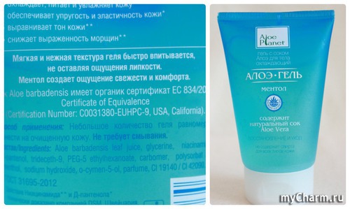 Охлаждающий алоэ-гель использую после депиляции - от успокаивает кожу, предупреждает возникновение раздражения. А ментол слегка охлаждает, снимает усталость и устраняет ощущение тяжести в ногах, что особенно приятно после длинного рабочего дня.