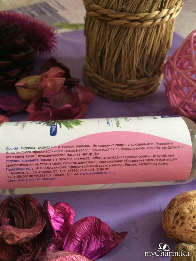 Как указывает производитель, свойства гидролата, можно сказать бесконечны. Данное средство прекрасно подойдет как для кожи в целом, так и для волос. Подойдет для любого типа кожи, имеет противовоспалительный и заживляющий эффект, обогащен микроэлементами и витаминами. Обязательно укажу противопоказания, которые отметили производители. Это беременность, люди, страдающие эпилепсией и непереносимость (индивидуальная) лавандового и розмаринового масел.