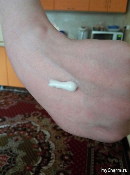 Консистенция. Жидковатая, легкая. После нанесения днем, жирного блеска нет. А на ночь просто мажу пообильнее. Цвет белый. Тональными кремами и пудрой не пользуюсь, поэтому не знаю, как он ведет себя с декоративной косметикой.