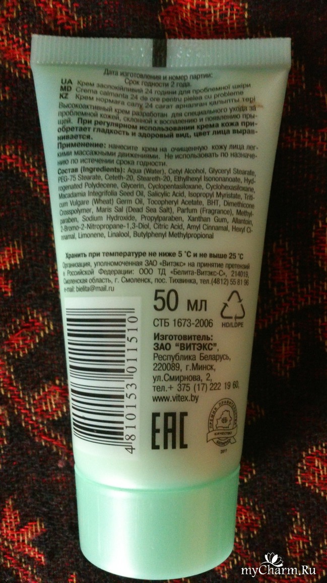 А вот по какому признаку дальше него он не пройдет точно – так это его жирность (хотя он и увлажняет тоже). Вроде бы по текстуре легкий, но … впитывается убийственно долго! Лицо после него лоснится как блин, а кожа кажется мокрой – причем при нанесении небольшой порции. Словом, пару раз нанеся его и смыв с утра, больше экспериментировать я не стала – теперь он используется только как ночной вариант.
