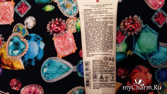 На задней стенке коробочки можно ознакомиться с полным составом крема. Крем рекомендуется для любого типа кожи. Для максимального эффекта производитель рекомендует использовать дневной крем в комплексе с ночным и кремом для области вокруг глаз от Silapant, но у меня к сожалению пока только дневной.