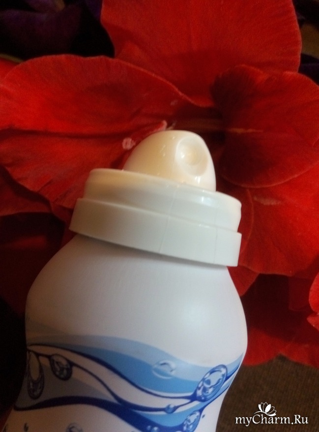 Разбрызгивает равномерно, по лицу потом вода не стекает. Но эффекта "облако" нет, эта вода немного тяжелее, на лицо ложится мелкими каплями. Имеет плотно закрывающийся прозрачный колпачок. Объем 125 мл.