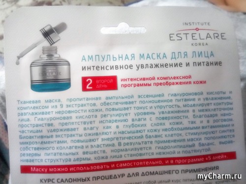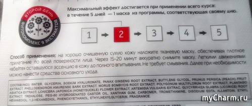 Моя масочка входит в серию тканевых масочек "5. DAY PROJECT", и применяется на второй день курса. И понятно, что максимальный эффект будет достигнут при прохождении всего курса. Но ее также можно применять и самостоятельно. За пятидневный курс кожа восстанавливается и реабилитируется. Если Ваша кожа постоянно подвергается стрессу и влиянию негативных факторов, плохо действующих на состояние ее здоровья и внешний вид, то этот курс просто необходим.