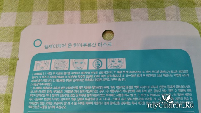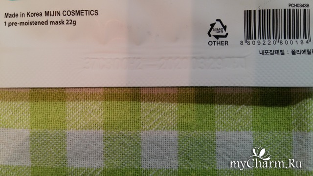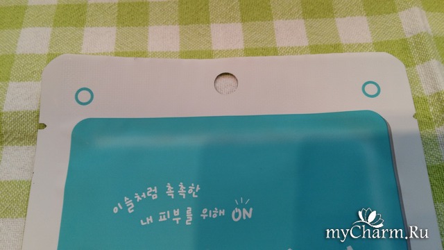 Сверху на пакетике есть отверстие, если в ванной есть крючочки, масочку можно повесить. С обеих сторон есть привычные для таких масочек насечки и не понятные для меня надписи на корейском языке)