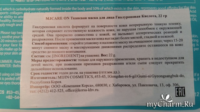 В сегодняшнем обзоре я хочу рассказать вам о тканевой маске для лица с гиалуроновой кислотой Hyaluronic acid mask mj care on от Mijin. Масочку сама я не покупала, а получила в виде сюрприза в новогоднем обмене открытками от нашей Юлечки (Юлия Б 1985). С брендом Mijin я до этого не была знакома и было приятно получить, что-то новенькое, а тем более еще и опробовать новую тканевую масочку на себе.