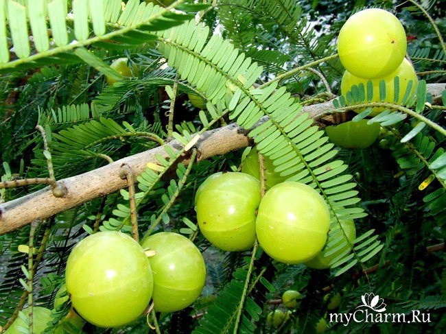 Амла занимает 1 место в косметики Индии. Масло амлы обладает разглаживающим, омолаживающим эффектом. Мимические морщины ей ни по чем! Амла отлично тонизирует и очищает кожу, выводя токсины. Лидер среди продуктов, содержащих витамин С. Кроме этого богата витаминами группы В ( В1, В2, В3). Удивительно, ведь амла — это и каротин, глюкоза, кальций, фосфор, железо, медь и многое другое.