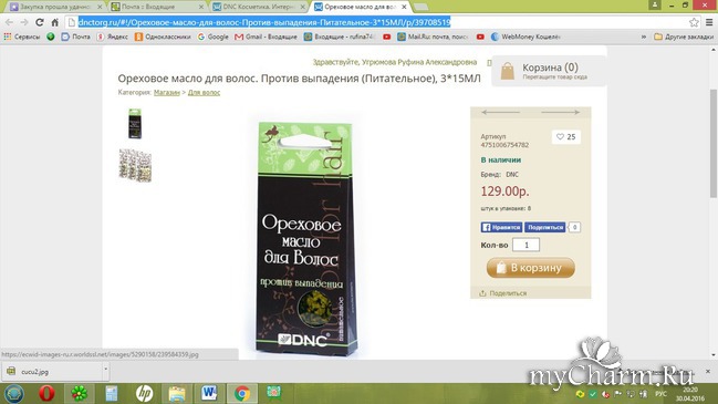 У меня всегда при применении различных масел для волос есть сомнение, что они будут с трудом смываться. Но Ореховое масло смывается пусть не за один раз, но за два великолепно. То есть вам следует использовать оба раза совсем немного шампуня и масло великолепно смоется с волос. А его остатки, впитавшиеся в кожу головы, будут укреплять волосяные луковички до следующей процедуры. Цену средства в интернет-магазине вы можете увидеть на скриншоте.