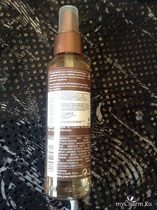 Итак, Растительный уход для автозагара «Спрей экспресс-автозагар для тела» от Ив Роше из линии «Шоколадный загар».