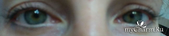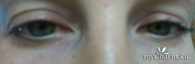 Смотрите сами: слева ресницы не накрашены, справа - один слой туши