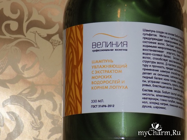 А рассказ мой на сей раз пойдет о Шампуне увлажняющем с экстрактом морских водорослей и корнем лопуха от «Велинии». Обычном шампуне для волос, казалось бы, но в этой простоте – его сила. Ничего лишнего! Никаких сульфатов, только экстракты трав, другие полезные природные ингредиенты, о которых расскажу ниже.