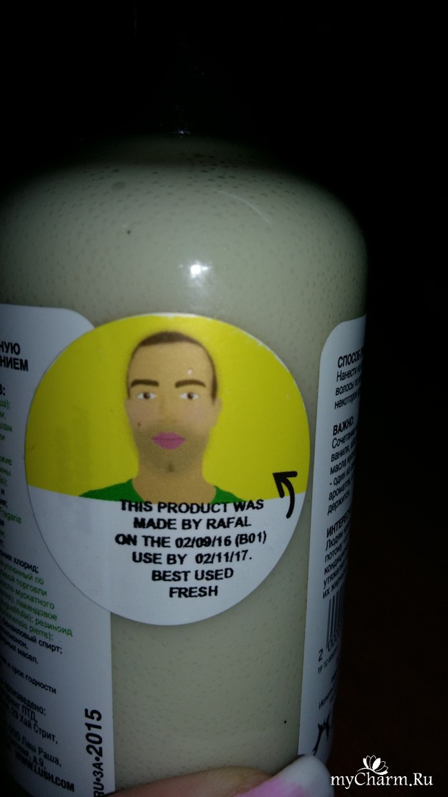 Перейдем к герою обзора. Передо мной прозрачная пластиковая бутылочка с черной крышечкой. Объемом 100 грамм. Крышка легко открывается, но при этом плотно защелкивается. Бросаем в дорожную сумку и не переживаем, что средство разольется. Бутылка, как и впрочем все баночки и флакончики выполнены из 100% переработанного пластика. Производитель советует использовать флакон повторно или отдать на дальнейшую переработку. Спереди черная этикетка с белыми надписями (краткое, информативное описание). На обороте состав. НА РУССКОМ ЯЗЫКЕ. Извините, но меня не перестает это восхищать. Не приходится гуглить))) каждое иноземное слово, чтобы узнать, что входит в состав. Зеленым шрифтом выделены 100% натуральные компоненты, черным не очень натуральные (но безопасные). Также есть их фирменная наклейка с именем того, кто сделан данный продукт и его нарисованное лицо. В этот раз это Рафал. Очень интересная, запоминающаяся фишка. Срок годности чуть более года.
