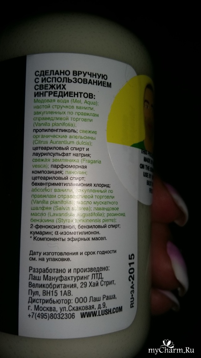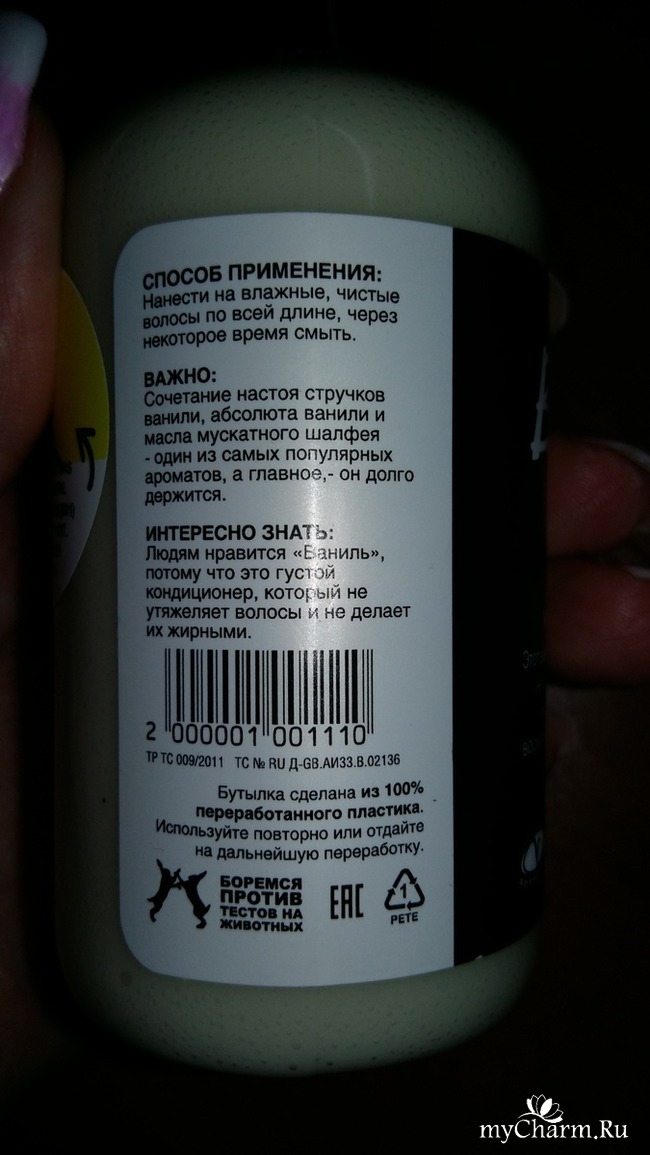 Запах. Ванильно-ванильный с ванилью и немножко медовый. Мне аж смывать его не хочется. Ванна благоухает, волосы благоухают и все довольны. Запах на волосах долго держится (не менее 12 часов). Муж сказал, я пахну конфетами.