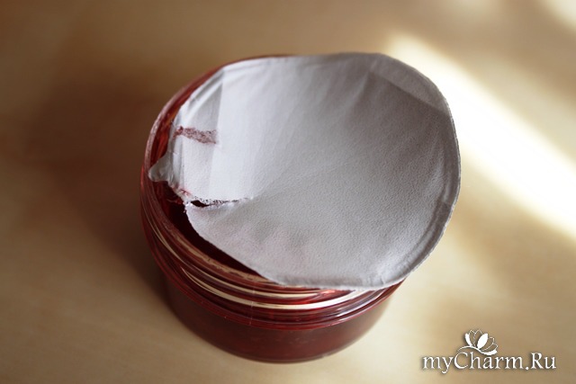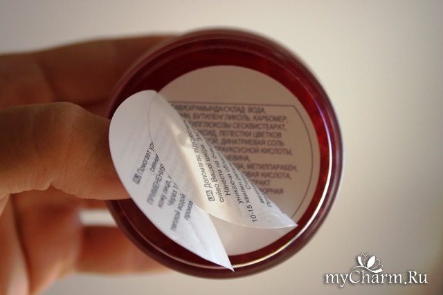 Консистенция маски гелеобразная, но если поставить в холодильник, то будет ближе к желе. Это еще и добавит охлаждающего эффекта. Маска реально напоминает варенье, потому что в ней много тонких измельченных лепесточков. Но такая необычность только подталкивает испытать новые ощущения.