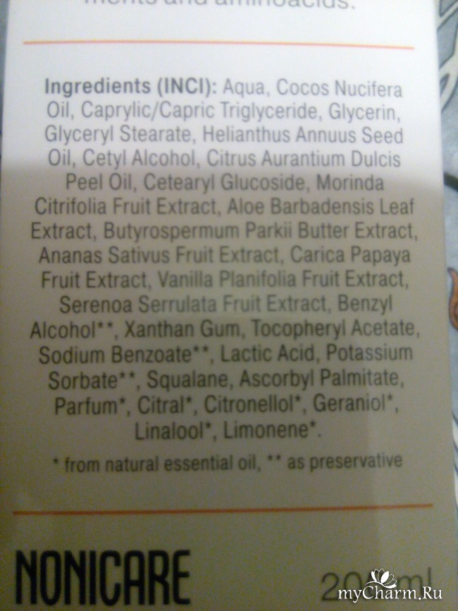 Состав продукта. Косметика Nonicare органического происхождения, поэтому в ней содержатся только натуральные компоненты, что видно на фото.