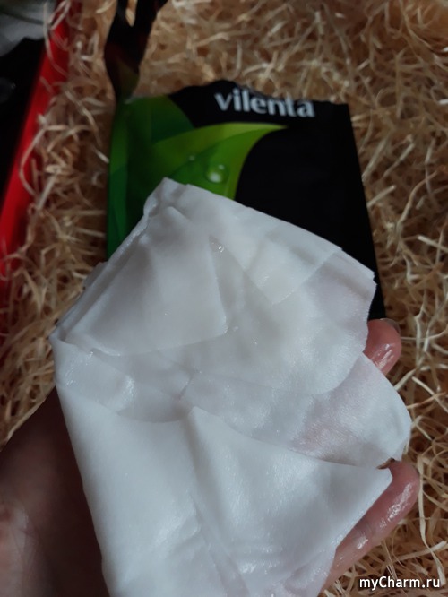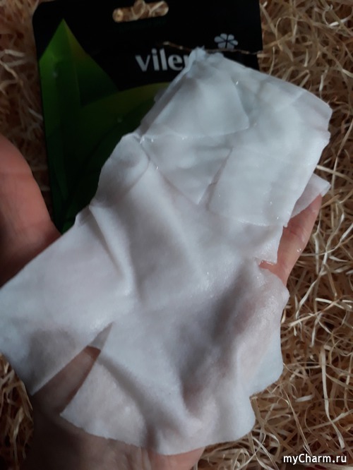 Аккуратно разворачиваю маску и наношу на очищенное лицо и шею, ткань маски плотная, как у всех масок этого производителя.