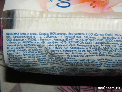 В общем и целом, все как обычно: веревочка, за которую удобно цеплять упаковку, стопроцентное содержание хлопка в дисках.