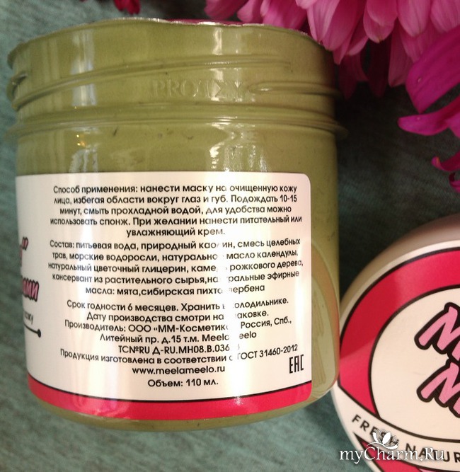 Маска находится в прозрачной баночке с завинчивающейся крышкой. Объем баночки 110 мл. На ярких этикетках имеется информация о производителе; нормативных документах, которым соответствует продукт; состав продукта; способ использования и хранения.