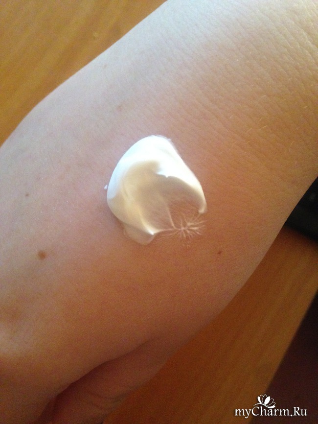 По консистенции крем густой, очень легкий, но плотный. Наносить его на лицо нужно легкими движениями, слегка похлопывая. Запах легкий цветочный, ненавязчивый.