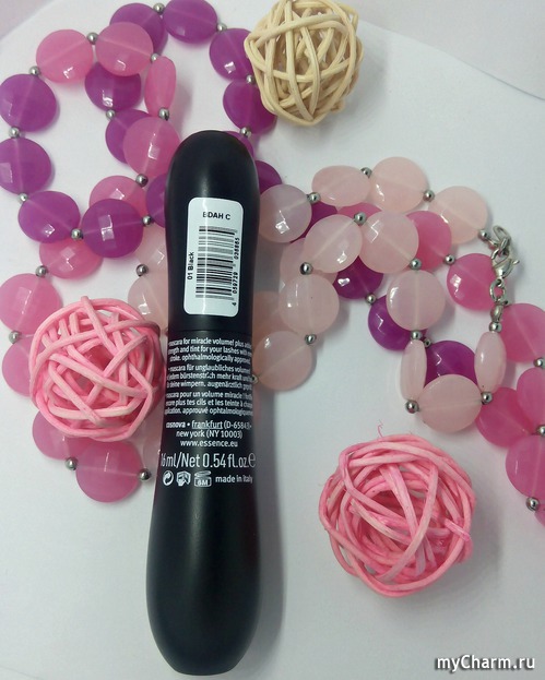 Произведена тушь в Италии, срок годности после вскрытия составляет 6 месяцев. Объем достаточно большой, 16мл. Такая тушь легко поместится в любую косметичку и даже небольшую вечернюю сумочку.