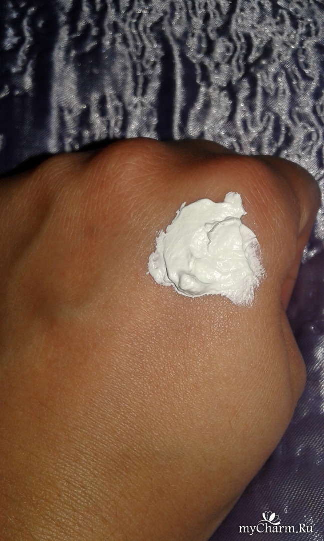 Сама маска белого цвета, по консистенции очень густая. Не могу конкретно описать ее аромат, но отмечу что он совершенно не навязчивый, а скорее легкий, нежный.