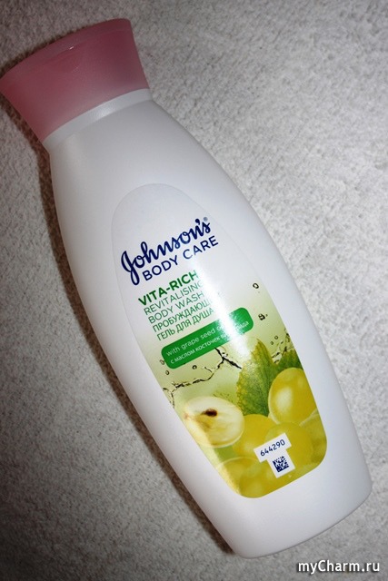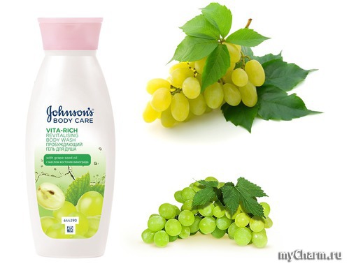 Тем, кто знаком с линейкой Johnson’s body care Vita-Rich, известно, что это удивительный ассортимент фруктово-ягодно-цветочных ароматов. Выбрать сможет даже самая капризная леди. Вот и данный вариант привлекает изображением спелого зеленого винограда, утопающего в зелени листьев и брызгах прохладных капель. Как это волнует в жаркие деньки?! Не передать словами. Все чаще приходится принимать прохладный душ, а компанию составляет Пробуждающий гель Johnson’s body care. Он реально пробуждает сознание от утомляющего солнца и духоты. Вдыхаешь сладковато-фруктовые нотки, а с ними получаешь глоток свежей энергии и сил. Флакончик не хочется выпускать из рук. Он такой удобный с приятной сатиновой поверхностью. Не скользит в руках и очень нарядно смотрится на полочке в ванной комнате.