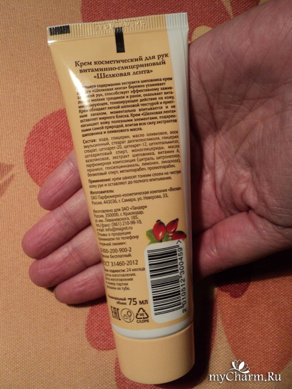 Крем имеет второе название «витаминно-глицериновый». Глицерин сейчас подвергается некоей критики от сторонников других увлажняющих ингредиентов. Но для кожи рук мне этот компонент нравится. Да, он может притягивать влагу не только из воздуха, но и из кожи. Этому может противостоять только регулярное увлажнение кожи и увлажненный воздух. В офисах воздух у нас не такой здоровый из-за кондиционеров и отопления, но дома у меня есть увлажнитель воздуха (в спальне), поэтому я спокойно и щедро использую крем на ночь.К тому же, в креме есть вазелиновое масло. С одной стороны, его не любят, так как это продукт нефтепереработки. Но, с другой стороны, оно способно образовать на коже пленочку, препятствующую испарению влаги. Возможно, это масло помогает удерживать влагу, которую притягивает на себя глицерин.